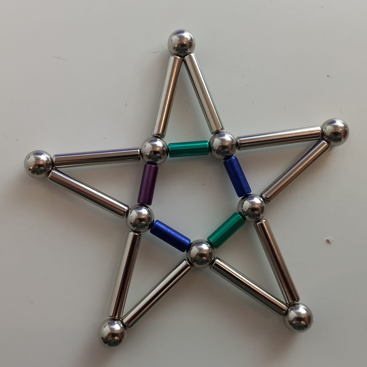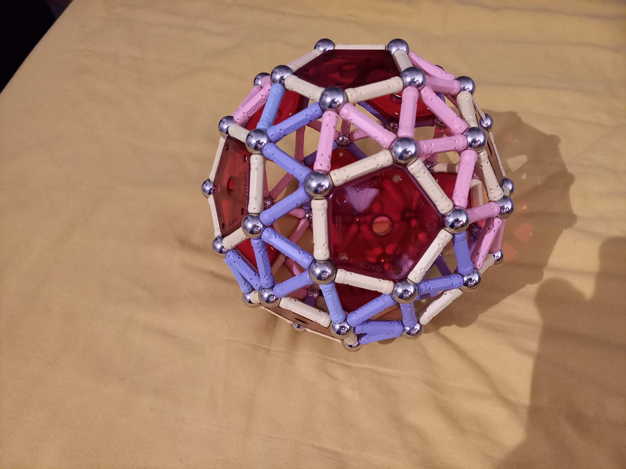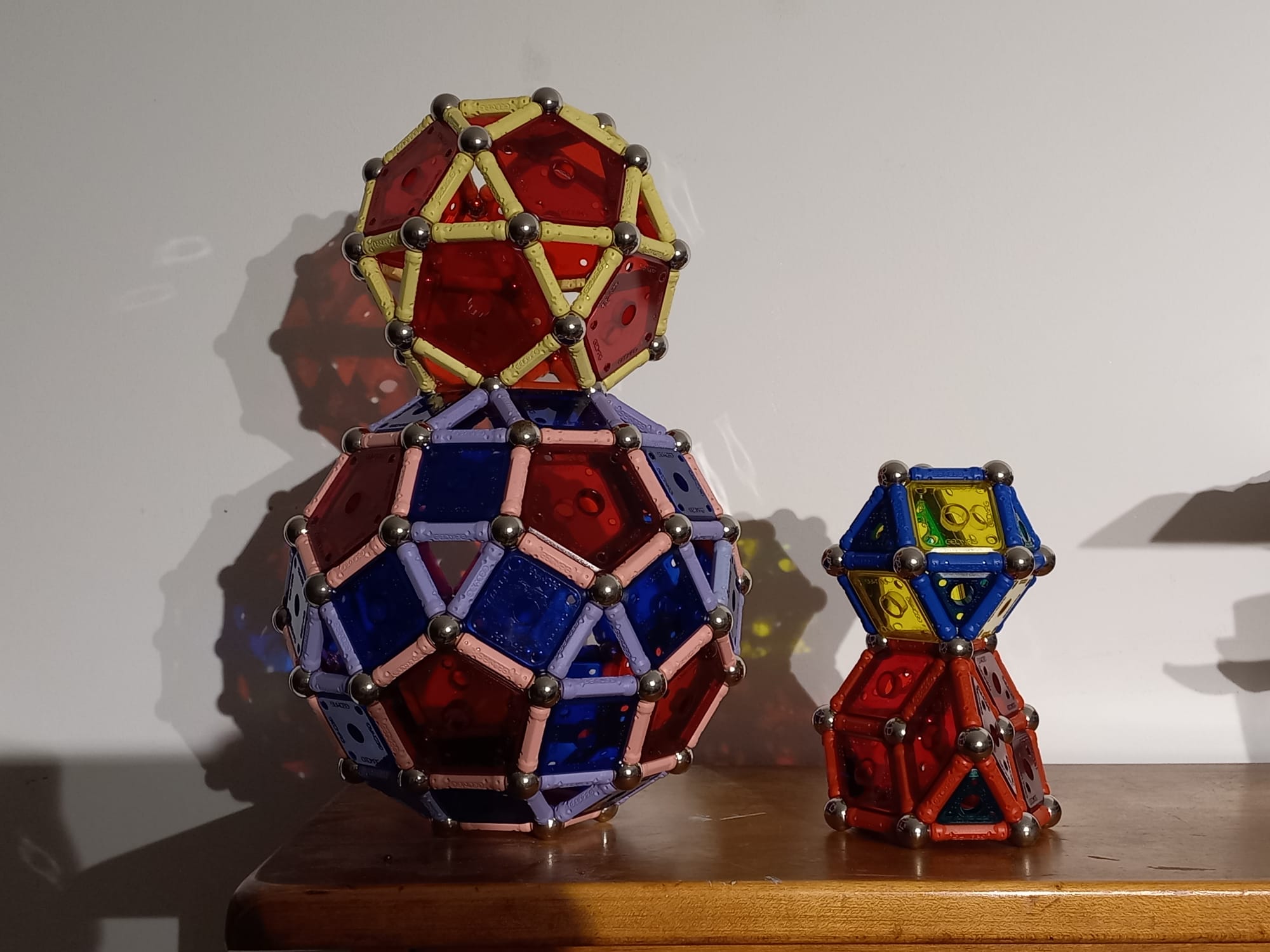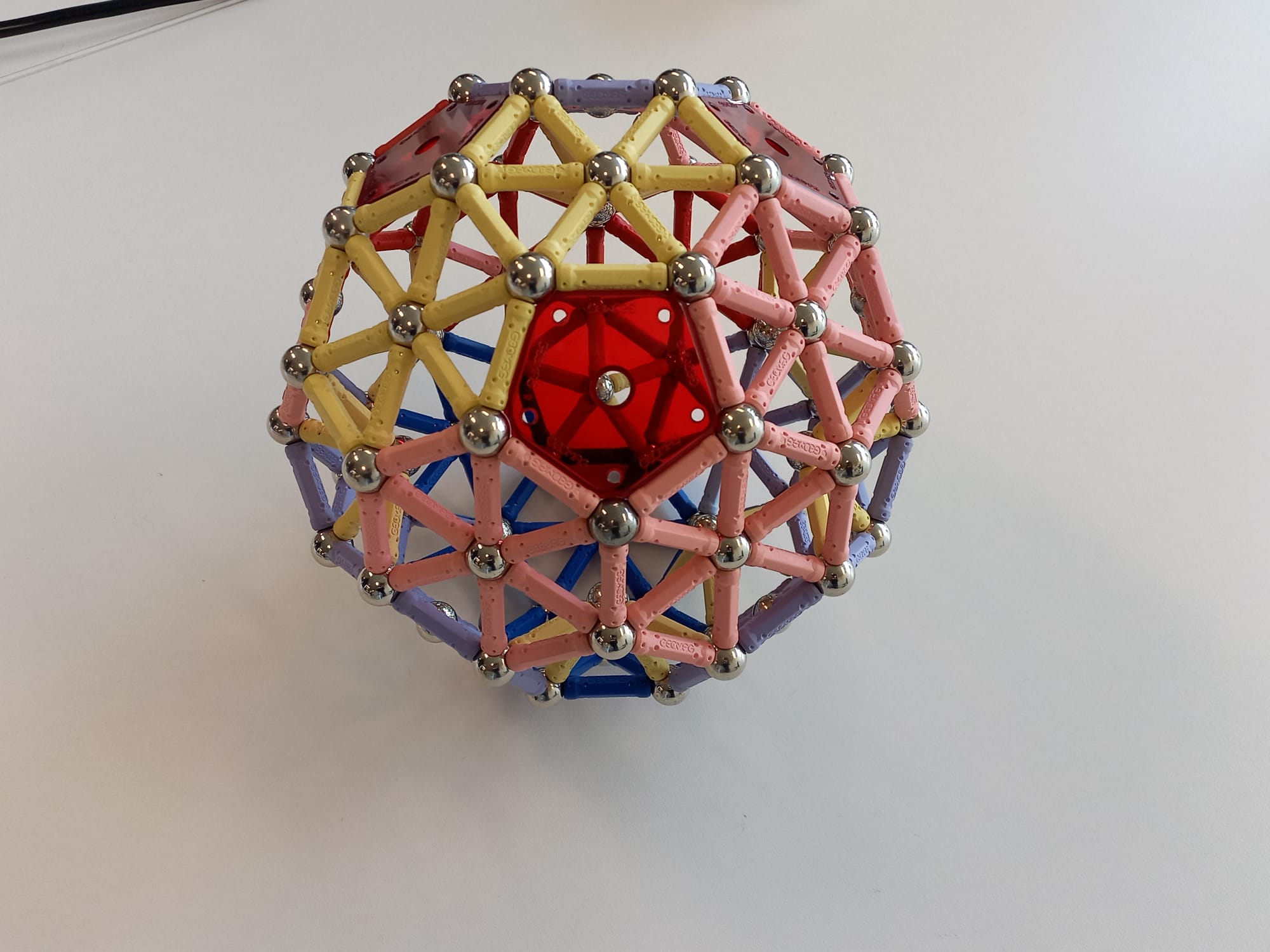 I am a huge enthusiast for — to avoid using any brand names here — `magnetic sticks and balls'. I always liked these while I was growing up. Then, when I was studying Topology in 2nd year maths, I saw Simplicial Complexes for the first time and I was instantly reminded of the toy. So I bought myself a small set for my desk. And a matching set for my sister (a fellow topology enthusiast). Then I wasn't satisfied with making only half a stellated icosahedron, so I extended the collection further...